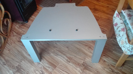 Ofrezco mueble para TV de madera lacada en plata y estanterías de cristal para otros accesorios. El plano con las medidas está en una de las fotos.